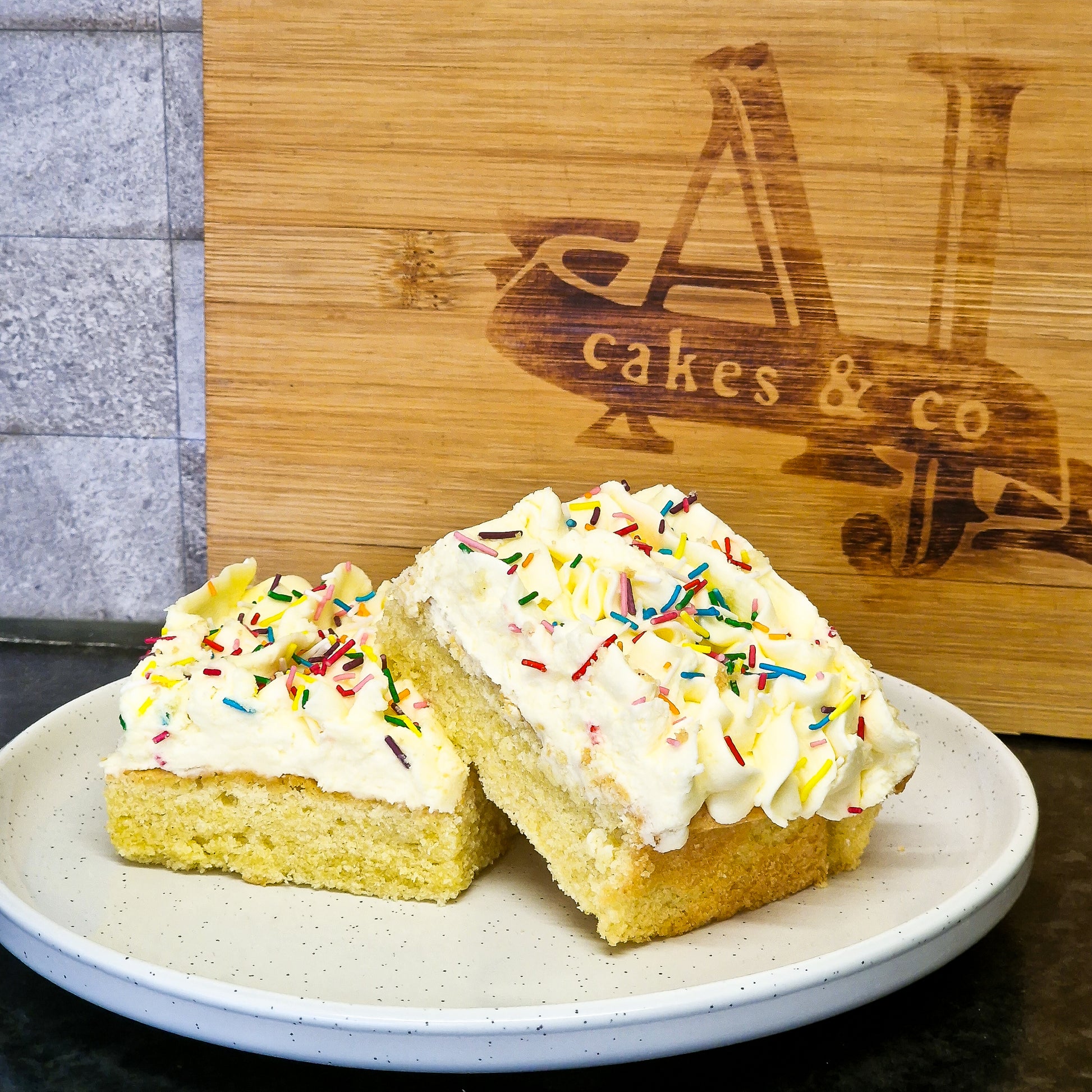 A timeless favorite inspired by the traditional school dinner tray bakes you know and love. Perfectly soft and comforting, it’s ideal for birthdays, tea breaks, or just when you need a sweet reminder of simpler times. Whether you're reliving childhood memories or introducing a new generation to a classic, our Buttercream Old School Cake is sure to bring smiles all around.